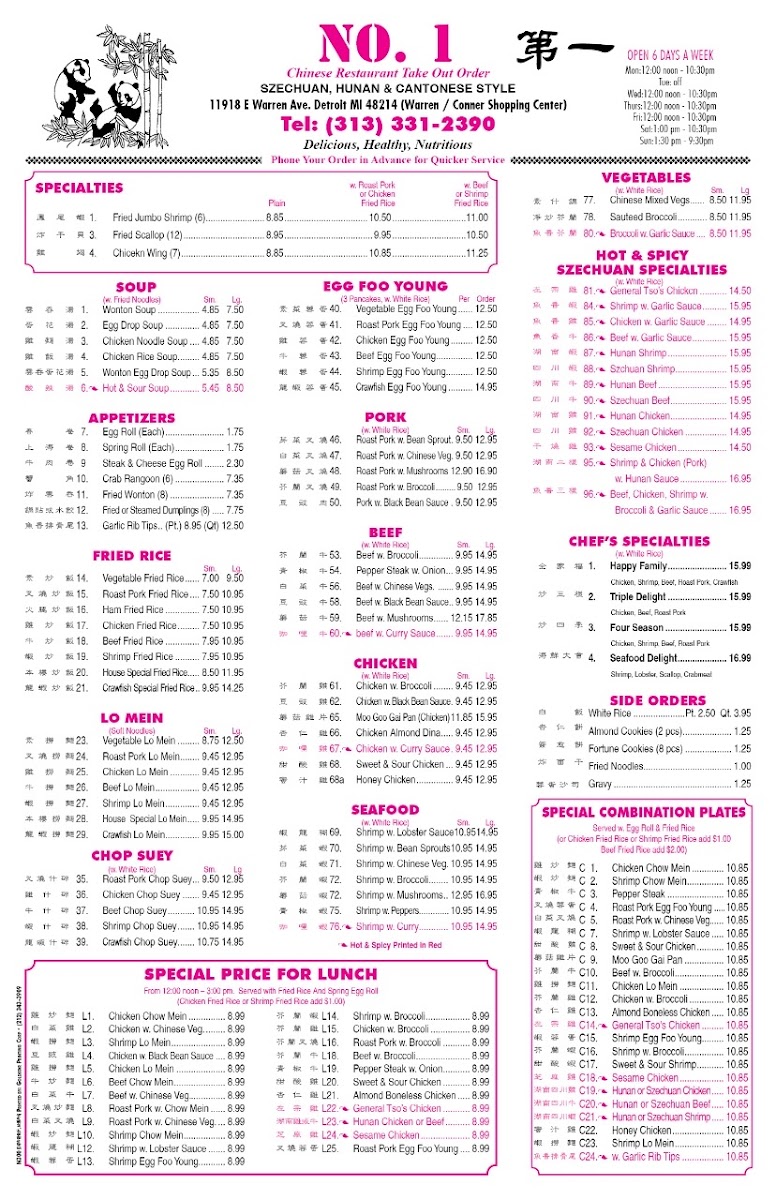 Welcome to the delightful world of Number One Chinese Restaurant, a beloved gem located in the heart of Detroit at 11870 E Warren Ave. This unclaimed establishment stands tall as a beacon for lovers of authentic Chinese cuisine. Whether you're in the mood for a family outing, dinner with friends, or simply craving mouthwatering dishes, this restaurant has something to satisfy everyone.